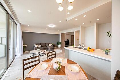 ■キッチン/リビングだイングを見渡せる空間設計の対面キッチン