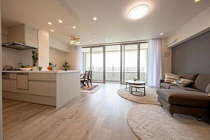 ■LDK/16階部分、採光面が大きな南向きに面し、採光・通風良好なリビングダイニングになります。