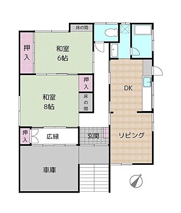 車庫付き!大きな窓が多数の、採光・通風良好な平屋