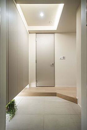 フットライトと人感センサーライトを設置した玄関です。収納力のあるシューズインクローゼットも備え付けましたので玄関もすっきり保てます。