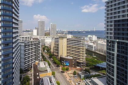 バルコニーからの眺望です。ベイブリッジや横浜港を望めます。