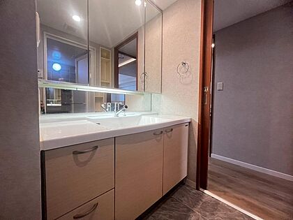 【洗面台水栓新調】ゆとりのある洗面室ですので、朝の身支度もスムーズにできますね♪洗面室に収納もあるため、整頓しやすいですね!