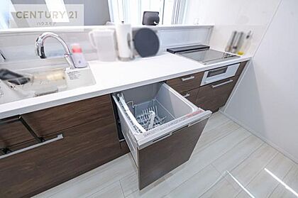 食洗機付き!忙しい時や冬場は手荒れ防止として大活躍します!ビルトイン仕様なので、場所も取らず調理スペースも広く使えて手際よく作業が出来ます!