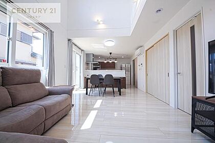 上部吹抜けで明るく開放感のある広々LDK!ソファーやダイニングテーブルを置いても窮屈にならないので快適に過ごせます!スタディカウンターはお子様のお勉強スペースにもぴったりです!