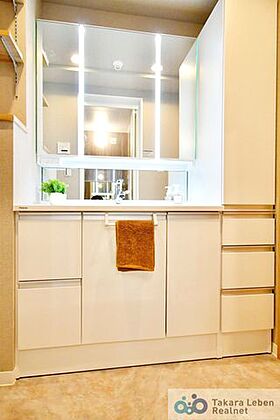 洗面室は朝を快適にさせてくれる大切な空間です。バタバタしている忙しい朝でも収納が多い洗面台では短時間で効率良く支度ができます。