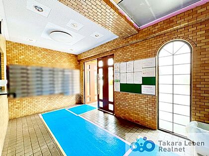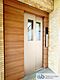 マンションエントランスです。落ち着いた温かみのある色調で、住む人をやさしく迎えてくれます。