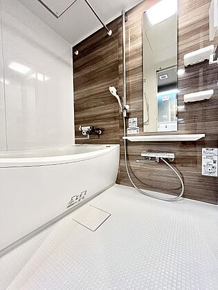 一日の疲れを癒してくれる明るい清潔感のあるバスルーム