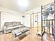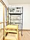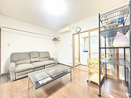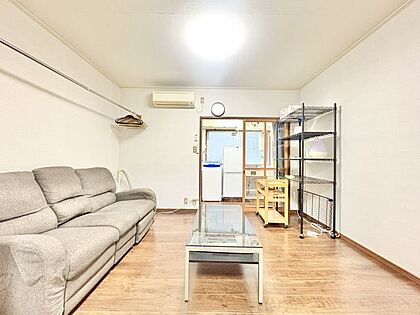家具付きで、3人掛けのソファーやテーブル、物干しなどの設備もそろっており、室内は広々としています。