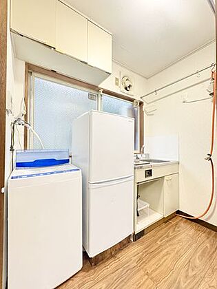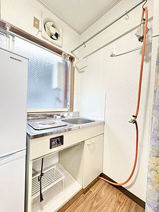 電熱コンロタイプのシンプルなキッチンが付いています