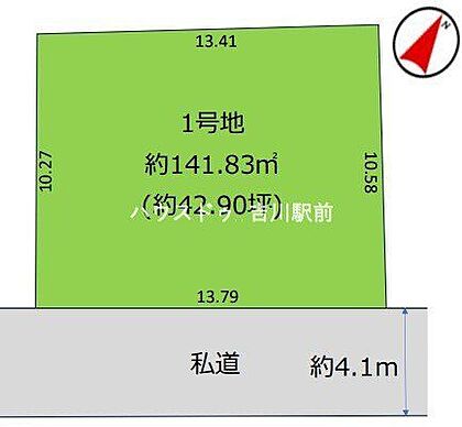 | 土地面積/坪(坪単価) | 142.15m2(登記簿)/43.08坪(53.40万円) | 代表的な接道 | 私道 南東 4.1m ※詳細は備考欄をご確認ください |