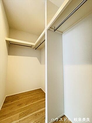 高い収能力のウォークインクローゼット。広々した空間は日常のものから趣味の道具まで様々なものを収納してくれます。