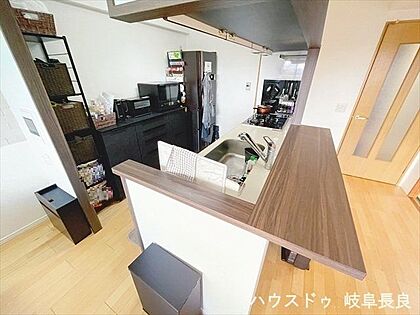 対面キッチンのため、家族の様子を見ながら家事ができます。食器棚・冷蔵庫など置いても作業スペースは十分に確保できる広さです。料理を覚えたてのお子様と一緒にお料理を楽しむのも素敵ですね♪
