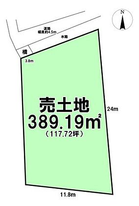 敷地面積389.19m2(約117.72坪)の広々とした売土地で、現在は戸建て付き!解体更地渡し◎北側公道4.5mに接道しており、水路を挟んで橋を渡ってアクセスできるため、独立性と開放感のある立地で…
