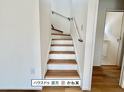 お子様やご高齢の方も安心して上り下りができる、握りやすい手すりのついた安心設計。転倒や踏み外しなどによる事故を防ぎます