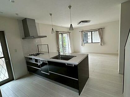 コミュニケーション充実にお役立ちのリビング階段付きです。配膳やお片付けにも便利な対面キッチン。