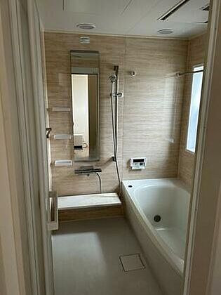 【浴室】 防水性や保温性に優れたシステムバスルーム!洗い場と脱衣所の段差が少なくバリアフリー