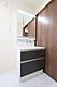 3面鏡のシャンプードレッサーは収納充実!朝のお支度も楽々できますね。