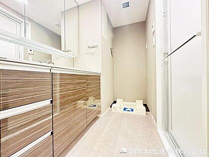 ゆとりの洗面スペースで朝の身支度も快適スムーズに。鏡で髪のセットやお化粧もストレスなくこなせ、朝から気分良く通勤通学に向かえそうですね!たっぷりと収納スペースを標準装備!