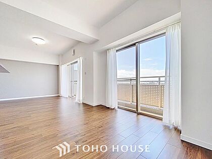 「20階×陽当り良好。」団欒の場であるリビングには、暖かな陽光が贅沢に降り注ぎます。かけがえのない一時を、明るい癒しの空間でお過ごし下さい。