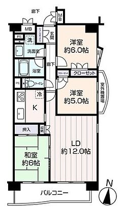 リビングダイニング約12.0帖。家族が集まる場所だからこそ、採光と通風を確保した心地よいリビングとなっております。
