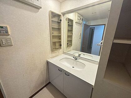 気持ちの良い朝はキレイな洗面所から。収納付きででモノが出がちな洗面所もスッキリ片付きます。