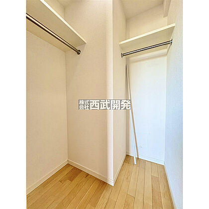 季節ごとの衣類の入れ替え不要、頼もしいウォークインクローゼットです。収納が大きいとお部屋も広く使っていただけます。
