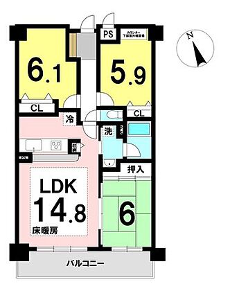 床暖房付きのリビング。冬も暖かくお過ごし頂けます。