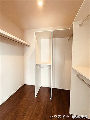 大容量のウォークインクローゼットを設置!ハンガーパイプや枕棚があらかじめついているので、サッと片づける事が出来ます!