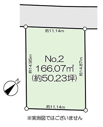| 土地面積/坪(坪単価) | 166.07m2(登記簿)/50.32坪(36.80万円) | 代表的な接道 | 一方 北西 4m ※詳細は備考欄をご確認ください |