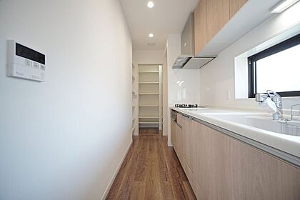キッチン奥にはパントリーを用意しました。いろいろな食材を使ってお料理を楽しんでください!