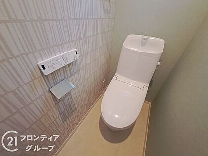 トイレは温水洗浄付き便器です。壁紙の色、窓の配置等、一邸一邸のこだわりをぜひ現地でご覧ください。