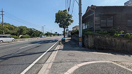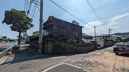 【接道】 角地 ( 公道 東 22m ) ( 公道 北 2m ) 現況古屋付き、解体費用は買主様負担となります。前面道路(国道)と敷地に50から80cm程度の高低差あり。 |