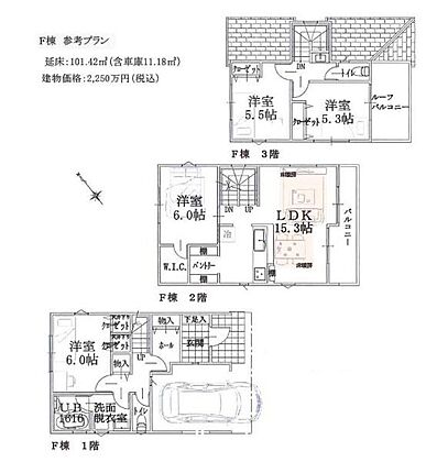 【接道】 一方 ( 南東 5.5m ) [物件コード]059101-144612、3区画(F宅地) 建築時に水道加入金82、500円別途あり 建物参考プラン:建物面積101.42平米・建物価格2、250万円(税込) 建築条件付き (建築条件付きとは) |