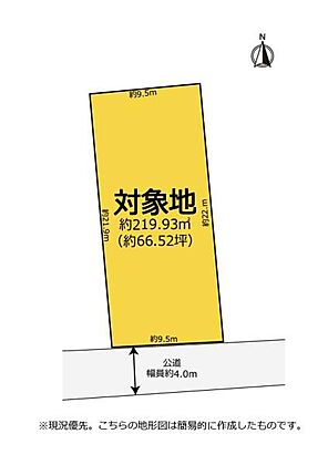 | 土地面積/坪(坪単価) | 219.93m2(登記簿)/66.65坪(19.50万円) | 代表的な接道 | 一方 ※詳細は備考欄をご確認ください |