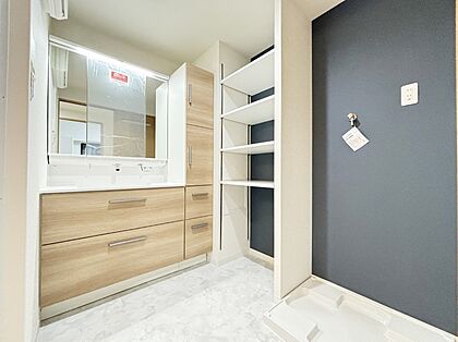 三面鏡洗面台は収納豊富、細かいものもスッキリ片付きます