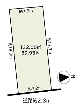 | 土地面積/坪(坪単価) | 132.00m2/40坪(14.80万円) | 代表的な接道 | 一方 公道 東 2.8m ※詳細は備考欄をご確認ください |