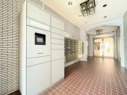 玄関には収納棚が設置されています。家族全員分の靴など片付けておけるのでスッキリとした空間を保てます◎