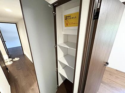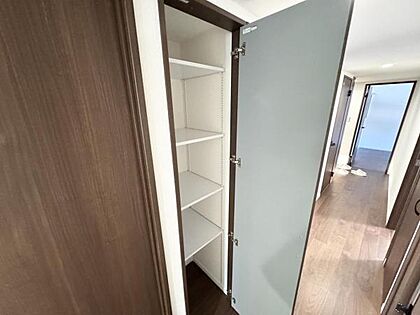 ≪収納≫ 廊下部分に完備された収納棚になります。