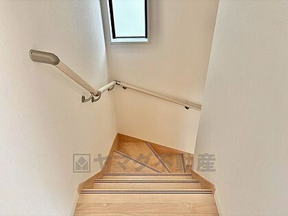 日中でも暗くなりがちな階段には、小窓を配置し採光も考えられたつくり^^手摺付きなので安全に上り下りできますね^^