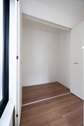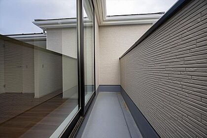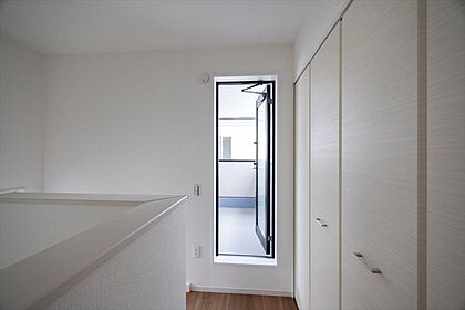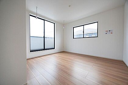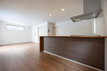 大きな掃き出し窓とスリット窓が開放感を演出するLDK