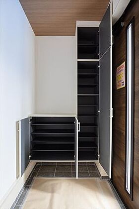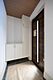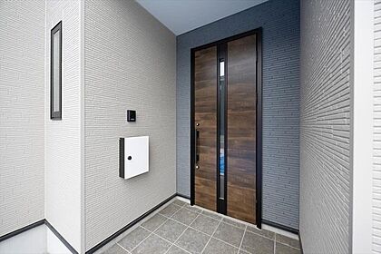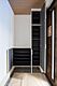 ダークカラーのアクセントパネルが高級感を演出する浴室