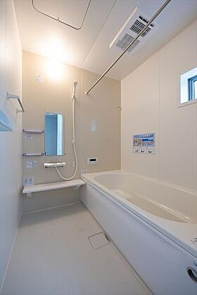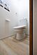 淡いベージュのパネルが柔らかい印象のバスルーム
