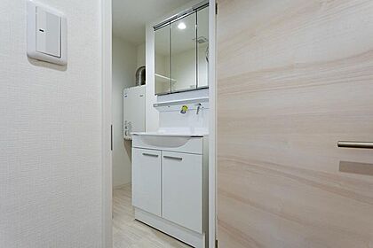 三面鏡の洗面台でお出かけ前のお手入れもスムーズ