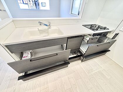 リビングを見渡せる人気のカウンターキッチン。 家族を見守りながら家事をすることができます。