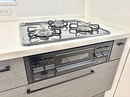 ガスコンロはSiセンサー搭載。火力調節や焦げ付き・消し忘れも防いでくれます。