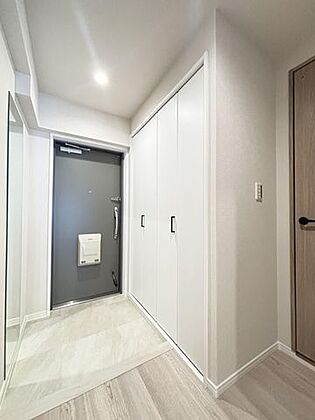 明るい玄関で、気分も明るくなりそうです。広さもあるので、物も置きやすいです。
