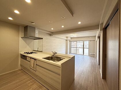 ナチュラルウッド調の床や天井のダウンライトなど、洗練されたデザインのLDKが魅力的です!