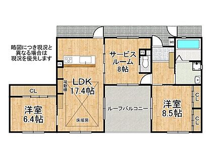 家族みんなでくつろぐLDKは17.4帖。隣接するサービスルームの扉を開放して、広々と使うこともできます。