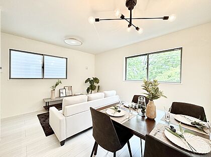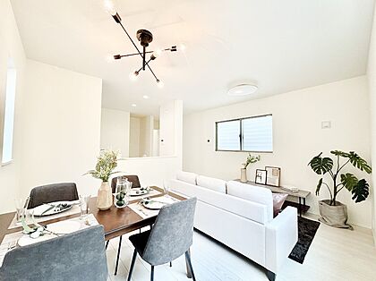 •  明るい陽光が注ぎ、寛ぎの雰囲気に満たされるリビングダイニング