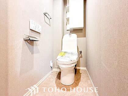 トイレはシンプルにホワイトで統一した温水洗浄付です。